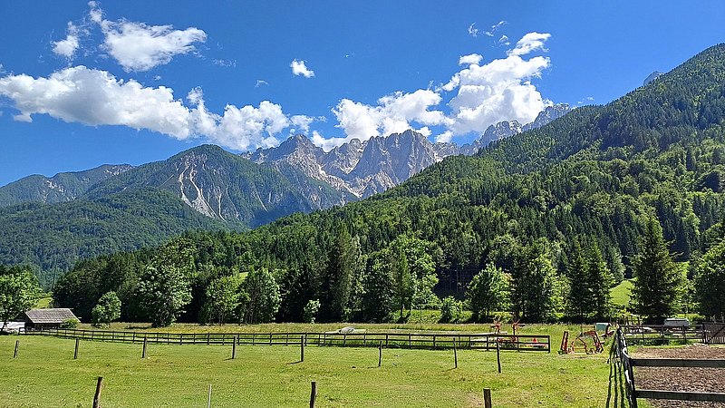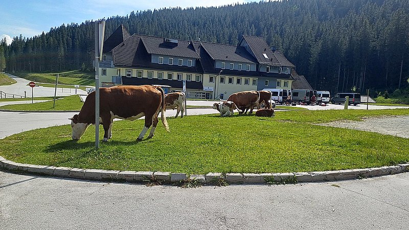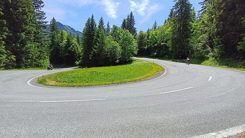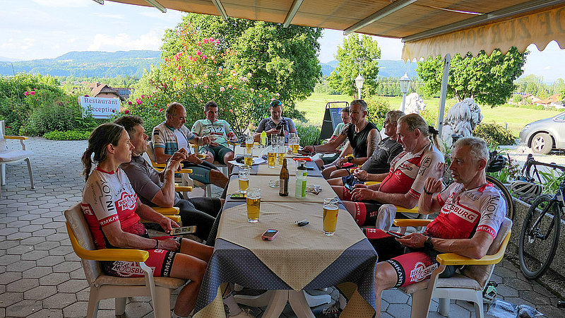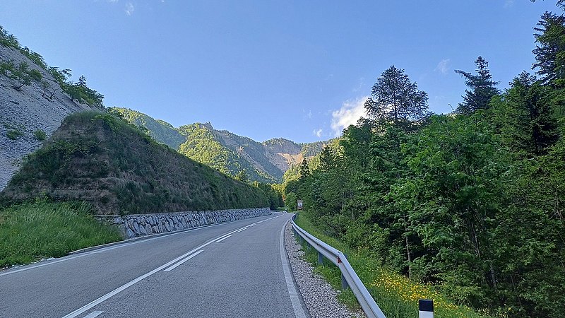 Der letzte Tag stand im Zeichen der Hitze. Schon die Morgentemperaturen waren mehr als angenehm und im Tagesverlauf solle es eine schweißtreibende Angelegenheit werden. Von Ferlach ging es zuerst in östliche Richtung und zunehmend auf sehr einsamen Straßen bis wir den Seebergsattel erreichten. Dieser stellt neben dem Grenzübergang an der Passhöhe offensichtlich auch ein Eldorado für Motorradfahrer dar die die weiten Serpentinen für ihren Spaß nutzen. Allerdings sind auch da einige wenige hirnlose Biker unterwegs, die der Ansicht sind ein halber Meter Abstand sei beim Überholen vollkommen ausreichend. Nach der rasenden Abfahrt standen noch einige Kilometer auf ebener Strecke an, bevor bei Bled der letzte Anstieg zum ca. 1.300 Meter hoch gelegen Biathlonzentrum Pokljuka startete. Kleinere Probleme brachte dann noch die Heimfahrt mit sich. Ein gebrochener Auspuff ließ sich Gott sei Dank mit Kabelbinder fixieren, so dass der Weiterfahrt nichts im Wege stand.