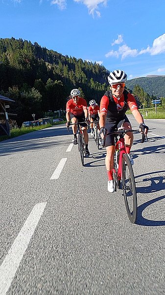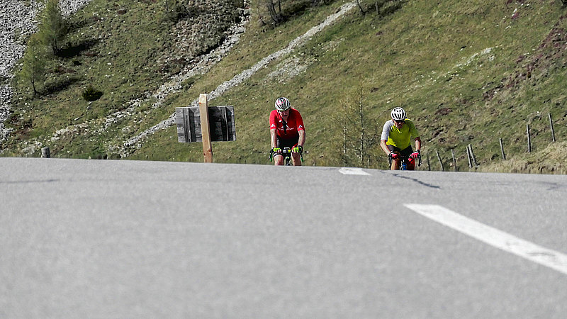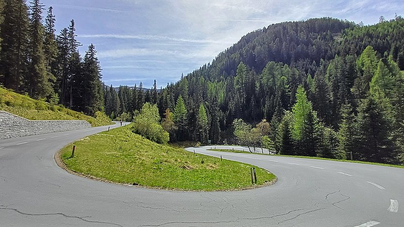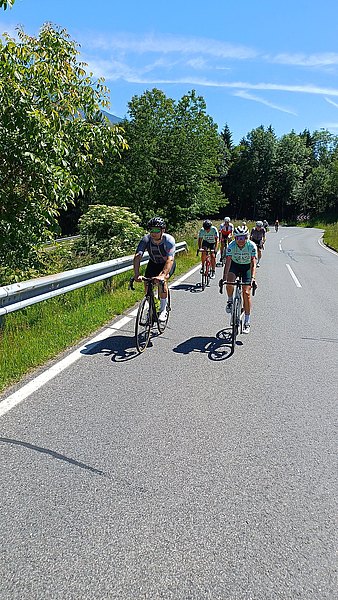 Noch nicht sonnig aber zumindest (einigermaßen) trocken starteten wir in den zweiten Tag, der uns über die Radstätter Tauern und die Nockalmstraße nach Döbriach am Millstätter See führte. Die Auffahrt auf der Tauernstraße war überschattet von extremem Autoverkehr. Wie sich herausstellte lag dies an einen Sperrung der Tauernautobahn und so wich der PKW Verkehr teilweise über die Landstraße aus. Also war kein kurbeln in ruhiger Umgebung angesagt. Als wir alle oben an der Passhöhe angekommen waren beruhigte sich der Verkehr zusehends und die Abfahrt war schon deutlich angenehmer, zumal nach den ersten Kilometern die dichte Bewölkung der Sonne Platz machte. Dies sollte sich nun auch für die nächsten zwei Tage nicht mehr ändern. Die Nockalmstraße mit ihren zwei Hochpunkten jeweils über der 2.000 Meter Grenze, bot gegenüber dem Tagesbeginn Entspannung pur. Das mag auch daran liegen, dass es sich um eine Mautstraße mit nicht ganz geringen Mautgebühren handelt.