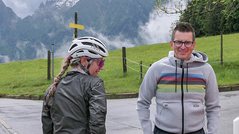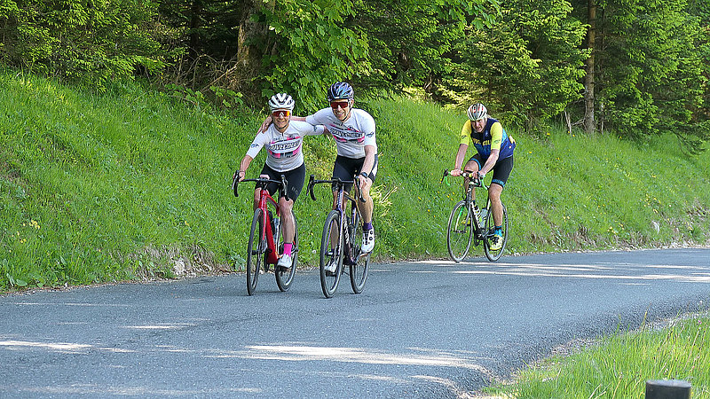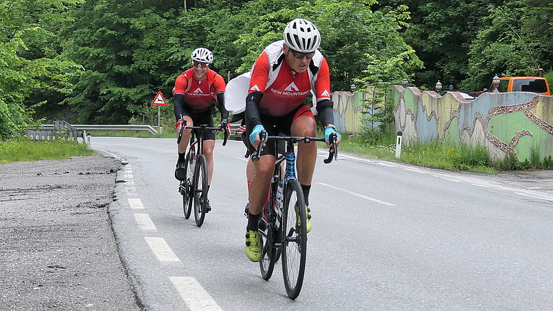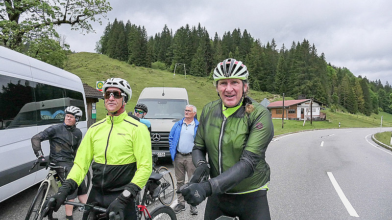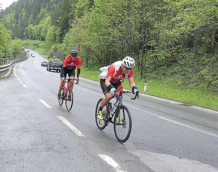 Regenwetter und Stau bei der Anfahrt nach Traunstein, so begann die diesjährige Alpentour. Auf dem Weg zum Startort dachte malte ich mir aus wie ich gleich alleine auf dem Radl sitze und mich meine Begleiter für verrückt erklären und die erste Etappe per Bus in Angriff nehmen werden. Aber weit gefehlt, sechs von neun entschieden sich für dreckige Räder, Nässe von (erste einmal) unten und später auch von oben. Nachdem Start zog sich die Strecke über das hügelige Voralpenland in Richtung Bad Reichenhall und Berchtesgaden und über das Hischbichl nach Österreich. Nach der Abfahrt wurde es etwas trockener und es ging weiter auf der Hauptstraße Über Saalfelden und Dienten, vorbei am Hochkönig bis zu unserem Etappenziel in Bischofshofen wo erst einmal Körper- und besonders Radpflege angesagt war.
