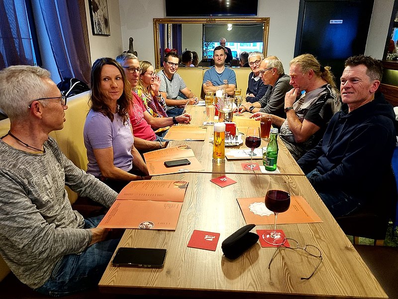 Am dritten Tag der Alpentour stand ein kurzer Abstecher nach Slowenien auf dem Programm, bevor es zurück über die Grenze nach Ferlach bei Klagenfurt ging. Da das Gerücht umging der Wurzenpass sei sehr stark von PKW und LKW Verkehr befahren und durch die Steilheit sei die Luft von Brems- und Kupplungsgestank geschwängert, teilten wir uns auf. Nur Stefan und ich nahmen den Wurzenpass unter die Räder. Steil ja, extrem von Verkehr und Gestank belastet, nein. Allerdings machte uns einer unserer Busse sorge, bei Vollgas wollte dieser nur noch mit etwa 20 km/h bergauf fahren und auch auf der Ebenen waren nicht mehr als 60 drin. Als wir uns zur Pause in Kranjska Gora trafen, halfen viele Blicke in den Motorraum und so viel Tom auf, dass ein Schlauch vom Turbolader abgegangen ist. Mit Kabelbinder wurde dieser wieder fixiert und so ging die Fahrt auch für unseren Bus weiter. Über den Loiblpass steuerten wir unser heutiges Ziel in Ferlach an.