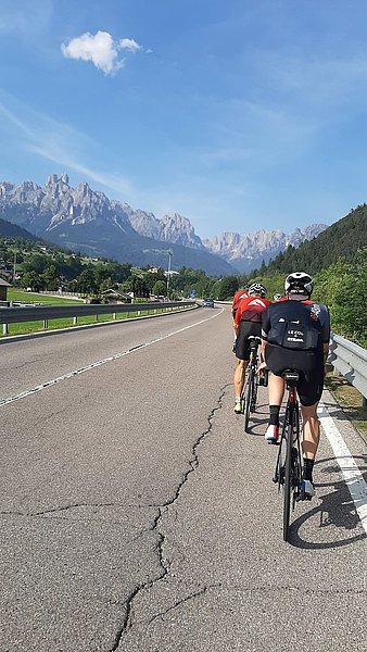 Nach einer Corona Zwangspause rollt der Alpentour-Tross wieder los. Die Tour wurde im Winter 2019/2020 geplant und musste dann wegen der Folgen der Pandemie auf erst mal ungewisse Zeit verschoben werden. Im Jahr 2022 war es dann soweit und die Planung konnte wieder aus der Schublade gezogen und in die Tat umgesetzt werden. Wenn gleich Corona noch nicht vollständig überwunden war (in der Woche vor unserer Tour erwischte mich der Virus erneut) starteten wir am 15.06. mit unseren gemieteten Bussen in Richtung Brenner. Doch schon da kam es zu einer ersten Planänderung, oben am Pass war es nass und so verlegten wir kurzerhand den Start nach Sterzing. Von dort aus ging es über das Penserjoch nach Bozen und auf die östlich Seite der Brennerautobahn über den Passo di Lavaze nach Cavalese zu unserer ersten Unterkunft.