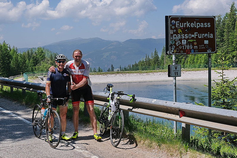 Neuer Tag, neuer Plan. Anstelle von Arraba wieder in südliche Richtung zu fahren planten wir die Strecke um, denn es war der letzte Tag der bayerischen Pfingstferien und so befürchteten wir auf der Heimreise in der Blechlawine auf der Brennerautobahn zu stehen. Neues Ziel Hausen (zwischen Lienz und Matrei). Es ging also zuerst über den Passo Campolongo, Alta Badia, La Villa das Tal hinaus bis Zwischenwasser um dort nach Osten abzubiegen und über den Furkelpass in Antholzer Tal zu gelangen. Das Tal immer weiter hinauf, am Biathlonstadion vorbei über den Stallersattel zurück nach Österreich. Nun nur noch eine Abfahrt und dann hieß es die Räder in unsers Sprinter verladen, notdürftig am Straßenrand waschen und Stau frei ab nach Hause.